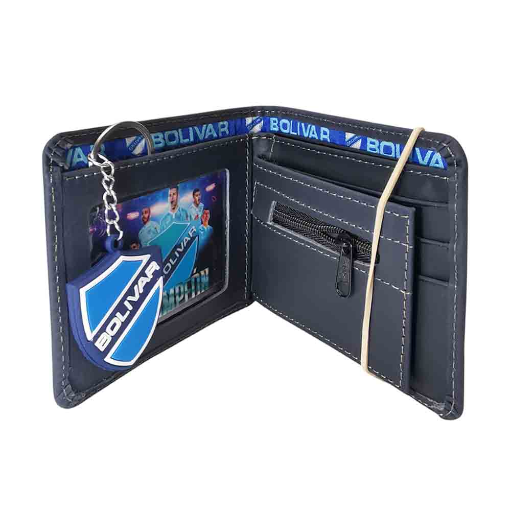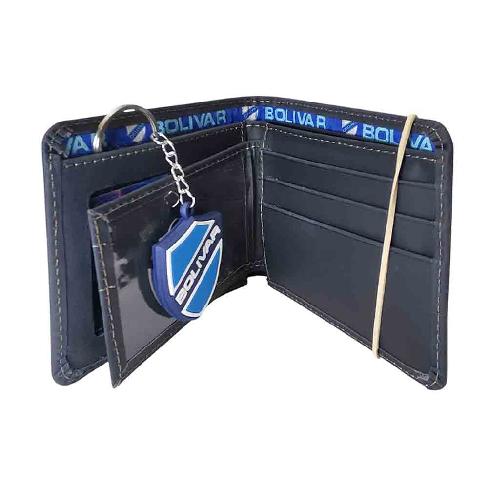 Pero la pasión no termina ahí: esta billetera viene acompañada de un llavero con el escudo del Bolívar en ambas caras, para que tu amor por el club se vea y se sienta en cada momento de tu día.