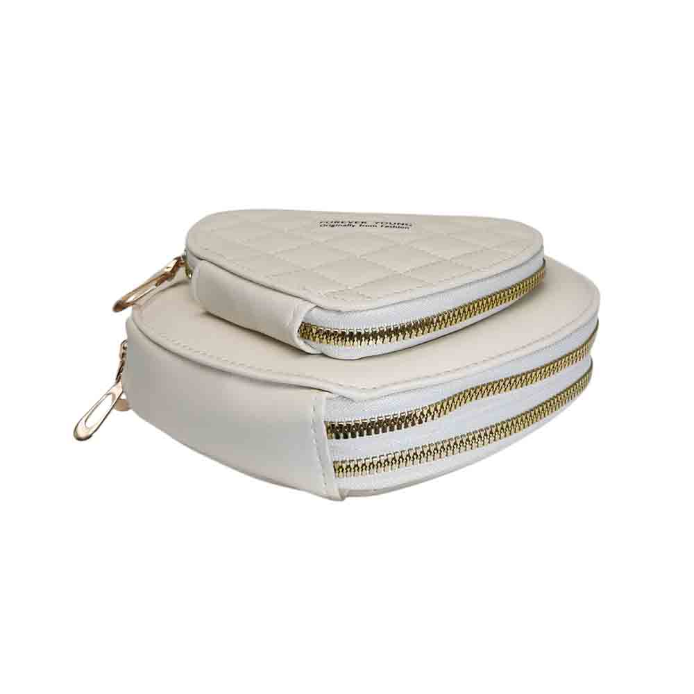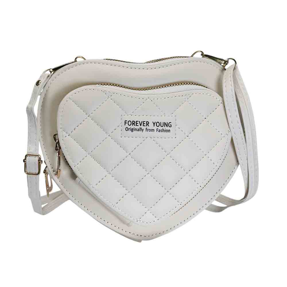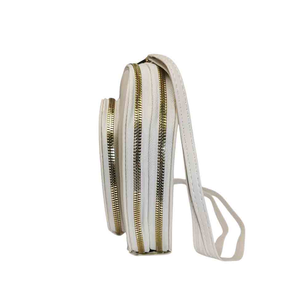 Cartera bandolera corazon, 3 cierres, blanco