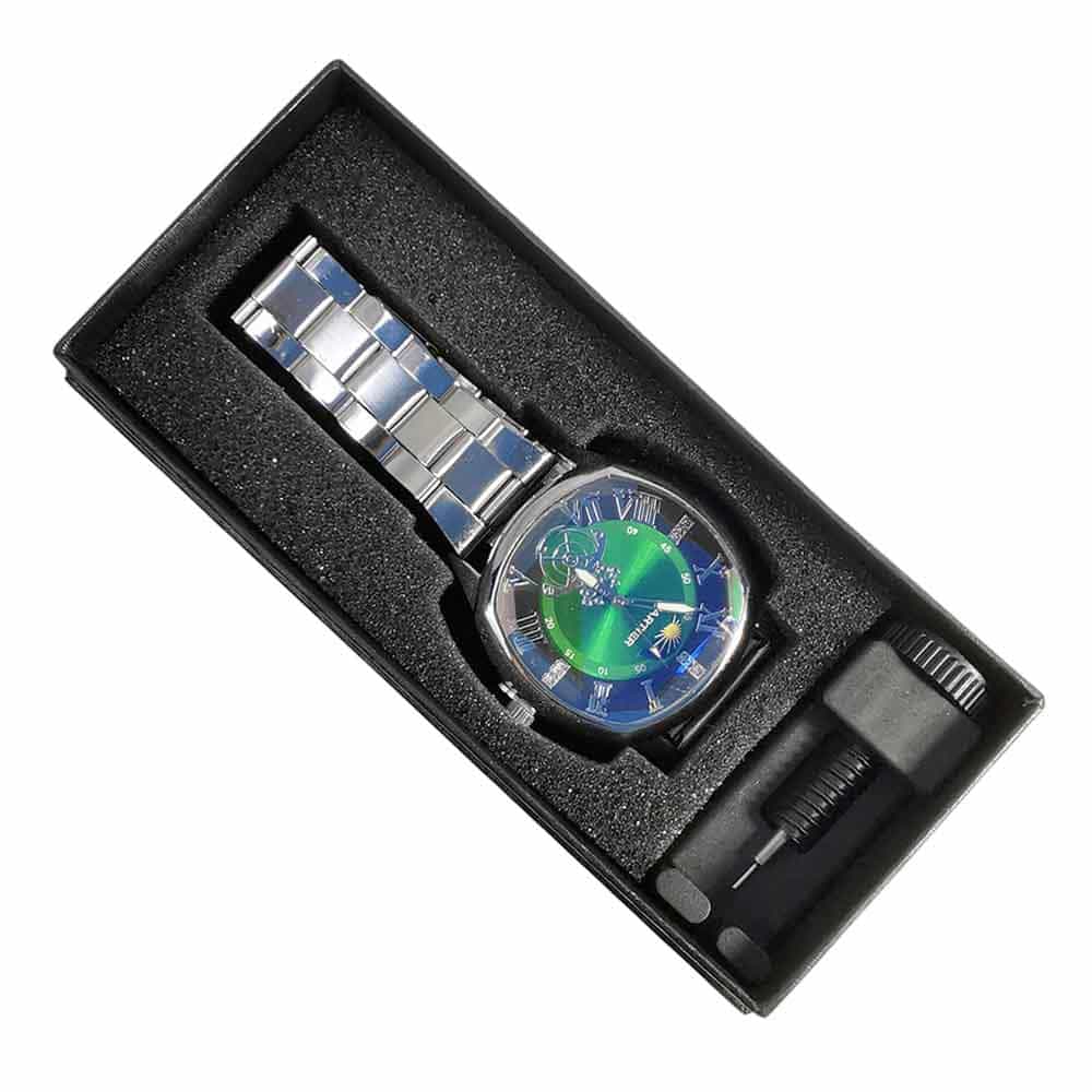 • Acabado Superior: Caja y correa de acero inoxidable con eslabones robustos que ofrecen un brillo duradero y gran resistencia.