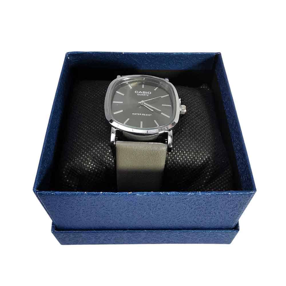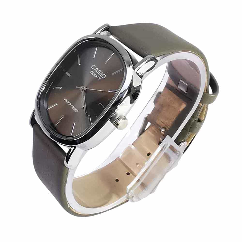 Eleva tu estilo diario con este reloj Casio de diseño clásico y sofisticado. Destaca por su elegante esfera en color vibrante con acabado cepillado, protegida por una caja metálica de forma única que combina lo cuadrado y lo redondo.