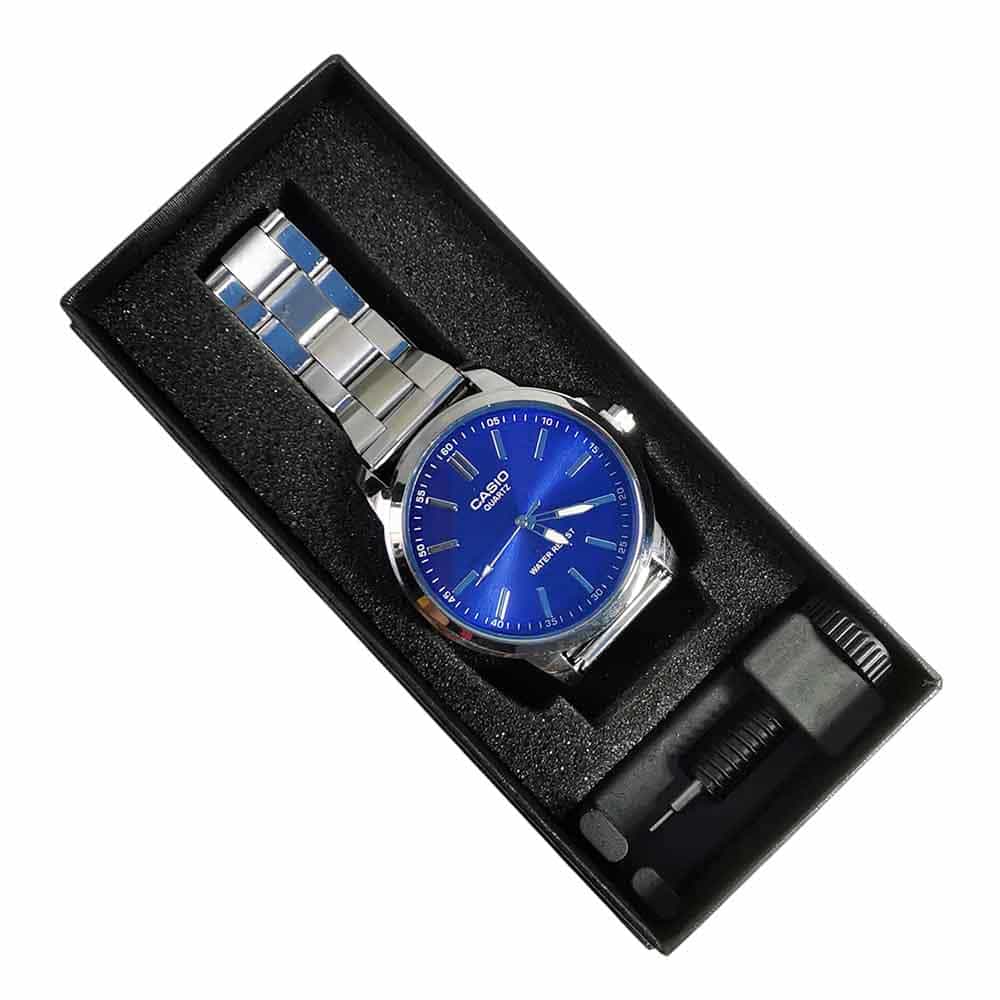 Añade un toque de distinción a tu muñeca con este reloj Casio de estilo ejecutivo y elegante. Su llamativo dial con efecto rayo de sol combina a la perfección con la robustez del acero, ofreciendo un aspecto moderno y duradero.