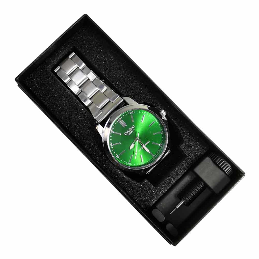 Añade un toque de distinción a tu muñeca con este reloj Casio de estilo ejecutivo y elegante. Su llamativo dial con efecto rayo de sol combina a la perfección con la robustez del acero, ofreciendo un aspecto moderno y duradero.