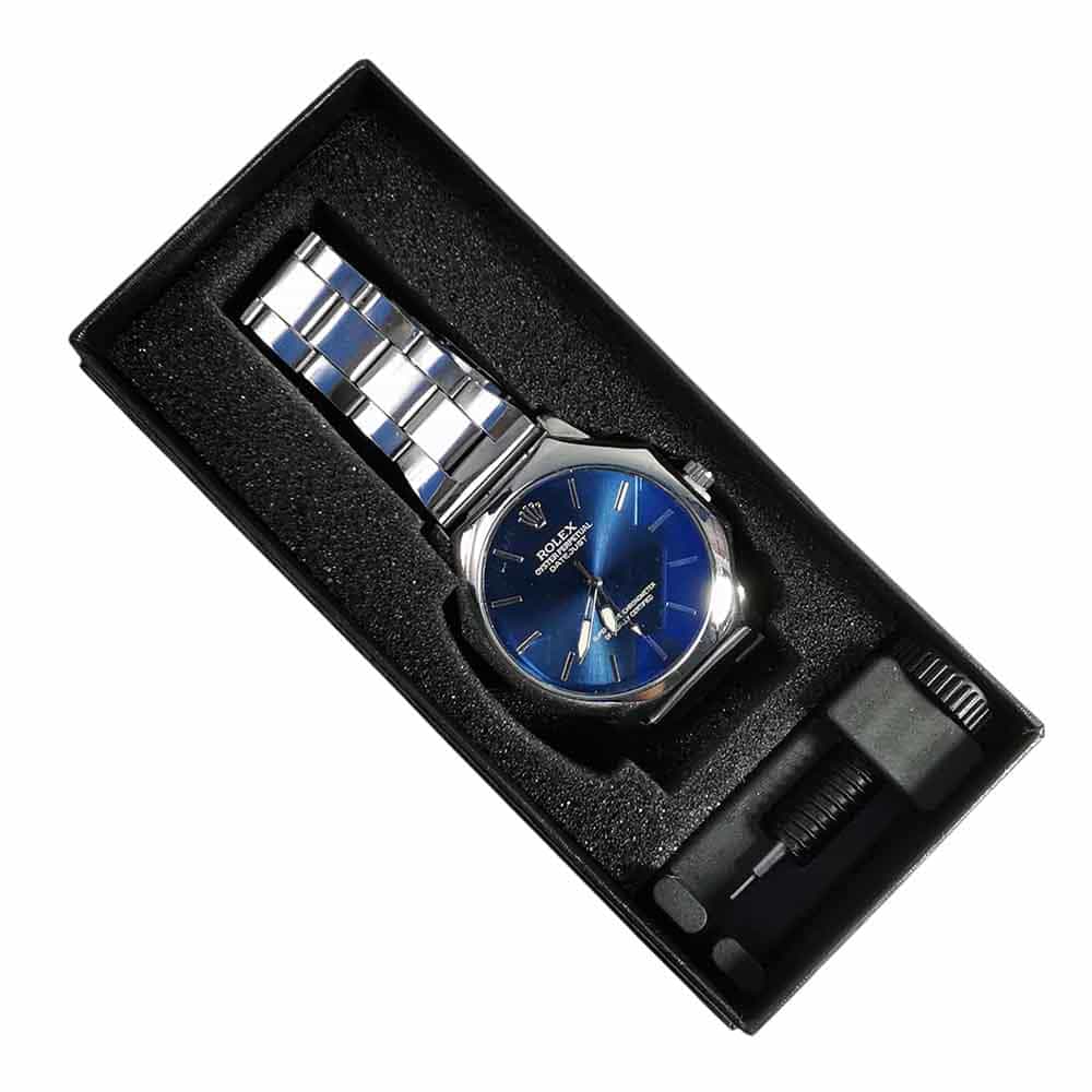 Reloj clasico, Rolex steel, azul