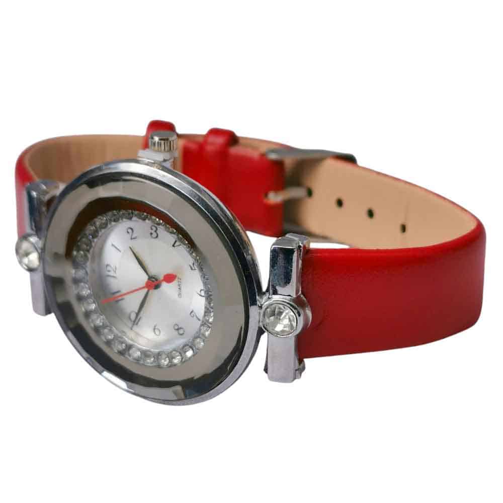 Sé el primero en valorar “Reloj para dama carátula diamantes, plata, rojo”
