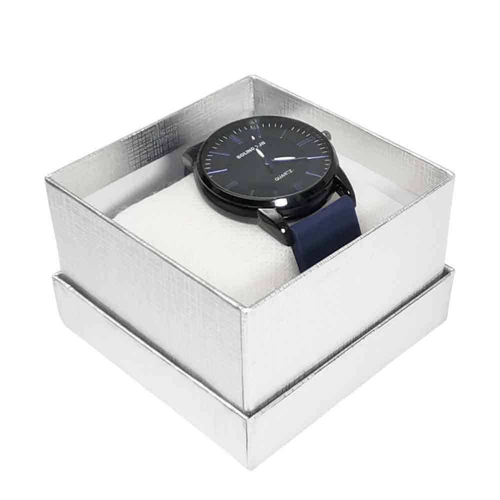 Este reloj es el accesorio perfecto para el hombre que valora el estilo y la sencillez. Con un diseño minimalista y elegante, su esfera oscura presenta indicadores y manecillas discretas, creando un contraste moderno y de fácil lectura.